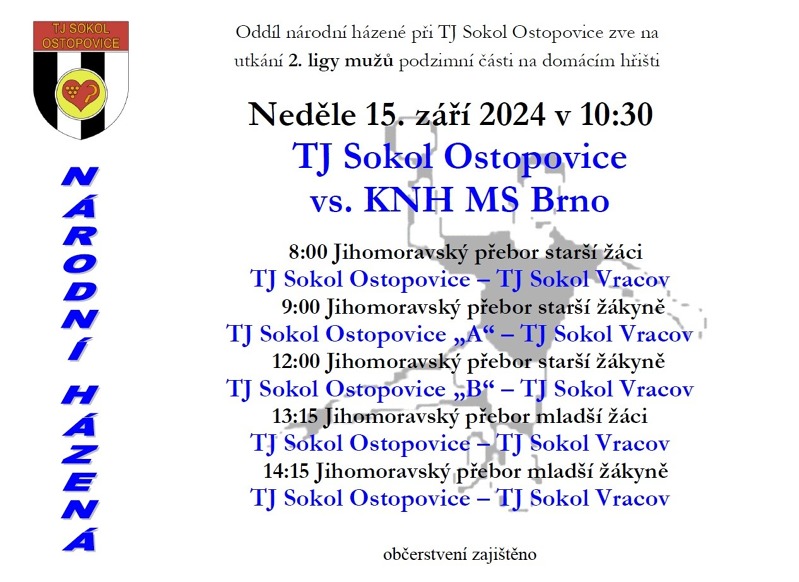 Po reprezentační pauze pokračují ligové soutěže, kdy se v neděli muži utkají s Moravskou Slávií Brno, která sestoupila z první ligy, ale startuje i jihomoravský přebor, do Ostopovic přijede se žactvem TJ Sokol Vracov. Přijměte tedy pozvání na první domácí zápasy nové sezóny!