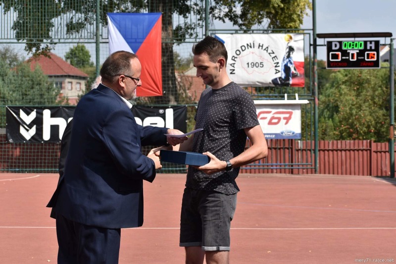Minulý víkend se konala tradiční házenkářská akce Čechy - Morava, tentokrát byla pořadatelem Studénka. V širších nominacích se objevilo několik našich hráčů, probojovat se do užší nominace se povedlo jedinému, Honza Zerák se měl představit v dresu Východu v kategorii juniorů, ale zranění v ligovém zápase s Jihlavou ho bohužel nepustilo hrát. Jeden zářivý moment však ostopovická házená zaznamenala. Ve vyhlášení nejlepších hráčů loňské sezóny byl vyhlášen Matěj Krejčík nejlepším hráčem 2. ligy mužů sk. B, cenu mu předal přímo na hřišti předseda národní házené Jiří Cedidlo.