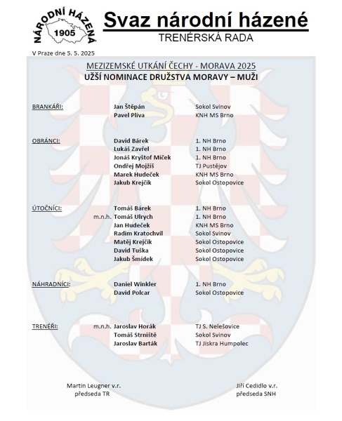 Možnost reprezentovat Moravu si vybojovali na obraně Jakub Krejčík a trio útočníků Matěj Krejčík, David Tuška a Jakub Šmídek. Mezi náhradníky zůstává David Polcar. Gratulujeme!
