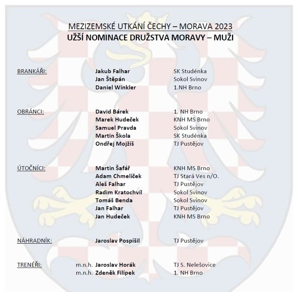 V konečné nominace na mezizemské utkání Čechy - Morava 2023 v Přešticích se nakonec nepředstaví ani jeden ze tří nomivaných, Martin Živěla a Matěj Krejčík byli v původní užší nominaci, ale z osobních důvodů se omluvili. Na obrázku pak uvidíte konečnou nominaci mužů Moravy.