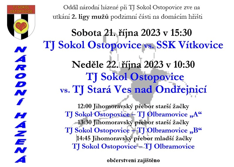 Přijměte pozvání na poslední domácí zápasy podzimní části, kdy se v rámci dvojkola představí muži, v neděli pak po ligovém zápase nastoupí starší i mladší žačky proti Olbramovicím.