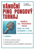 Srdečně vás zveme na tradiční Vánoční turnaj ve stolním tenisu, který se uskuteční