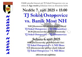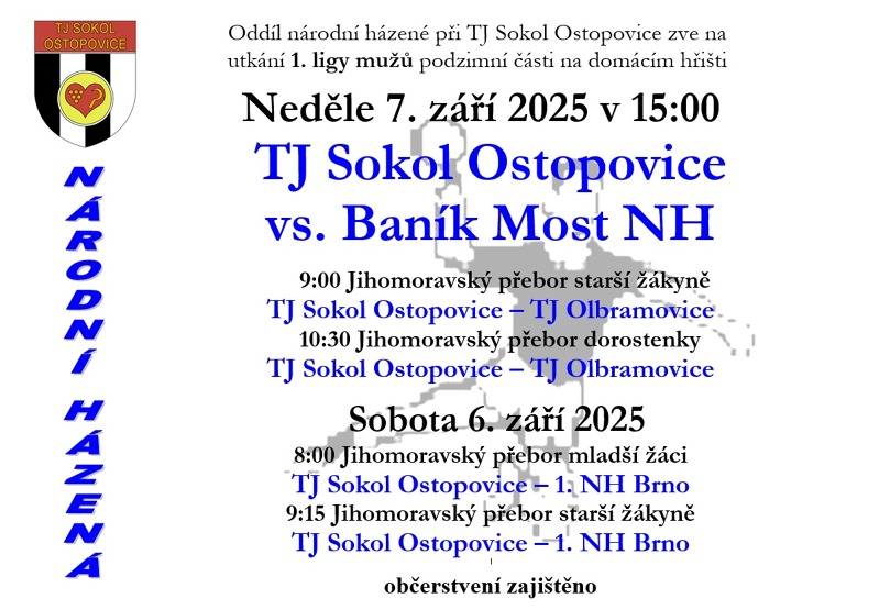 Domácí prvoligová premiéra klepe na dveře! V neděli 7.9.2025 bude od 15:00 naším soupeřem Baník Most NH. Tým ze severu Čech začíná svoji třetí ligovou sezónu v řadě, v loňském nesmírně vyrovnaném ročníku skončil na 7. místě s 19 body, když ho dělil od postupu do PLAY-OFF jeden bod, jeden bod ho však dělil i od případného sestupu (18 bodů měly 4 týmy, rozhodovala vzájemná minitabulka, nakonec spadla Dobruška). V prvním kole Ostopovice zvítězily v Kyšicích 23:20, hosté doma prohráli se Sokolem Krčín 24:18.